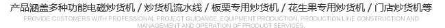 公司產(chǎn)品涵蓋多種功能電磁炒貨機,炒貨機流水線(xiàn),板栗專(zhuān)用炒貨機,花生果專(zhuān)用炒貨機,門(mén)店炒貨機等。 規格品種齊全、產(chǎn)品質(zhì)量穩定可靠,產(chǎn)品遠銷(xiāo)國內外。